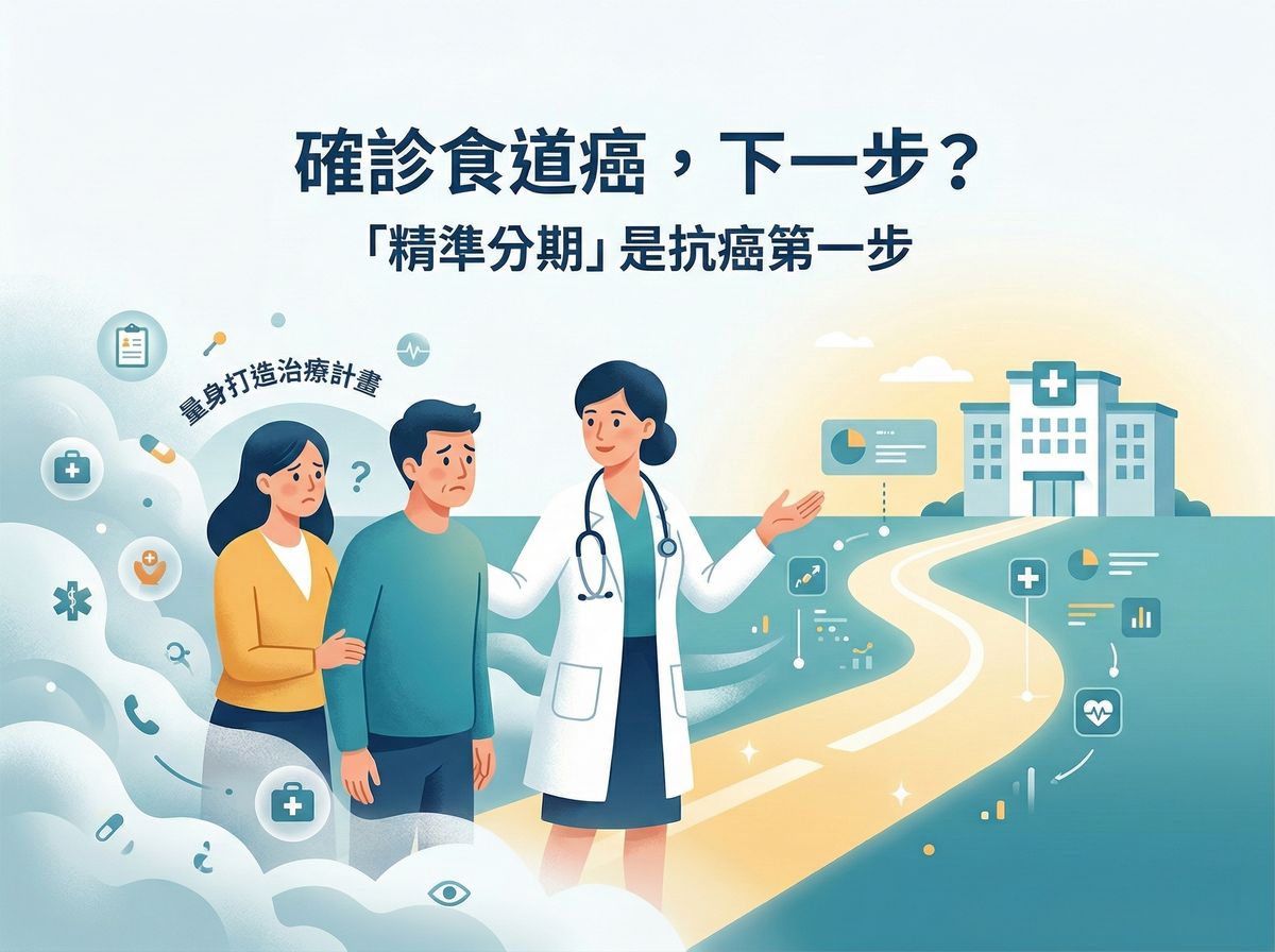 臨床發現腫瘤只是確診的第一步。醫療團隊為了替病人量身打造最合適、最有效的治療計畫,確診食道癌後必須進行「精準分期」。要達到精準分期目的,就必須仰賴三個關鍵檢查,從不同層面掌握癌細胞的具體狀況。