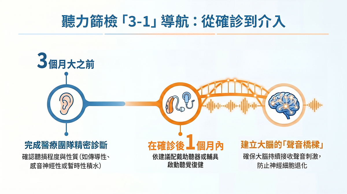 一旦確診,時間就更加寶貴了。接下來的「1」,是指在確診後的一個月內,必須依照醫師建議選配適合的助聽器或聽覺輔具。輔具的作用不是「治癒」,而是「橋接」——它像是一座橋,讓聲音信號重新傳入大腦。只要大腦能持續接收到清晰的聲音刺激,神經細胞就不會退化,這對於後續的學習至關重要。