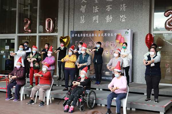 臺中慈濟護理之家住民由日照中心長輩表演「讓愛傳出去」手語歌,團隊同仁臨時被請上舞臺,肢體跟著律動形成彼此一家的畫面,極為溫馨。日照中心護理師林佩君表示,手語歌曲表演好處多多,長輩要學記歌詞、記動作,不但刺激腦部與四肢活動,還能增加認知與活動協調能力。李玉茹副主任則希望透過愛的傳遞,讓疫情能趨緩,讓大家都平安。
