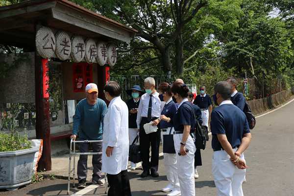院長問:「膝蓋會痛嗎? 走路有困難嗎?」凃先生:「有助行器所以還好,可以慢慢走」。細心的院長還跟志工叮嚀:「他的右眼已經失明,要安排到慈濟醫院做左眼檢查。務必要照顧好左眼,生活才不會更添麻煩。」
