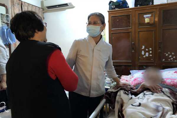 文哥出院後,醫療團隊對這家人的關懷仍持續不斷,黃靜力師姊得知這家人失去經濟主要來源,無力支付高額救護車費用,回診困難壓力十分沉重。簡院長接獲個案通報,與傷口照護師張華茹及黃靜力師姊同行家訪。