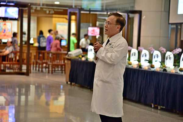 肝膽腸胃科主任廖光福見證當年九二一參與救災,幾乎成了驗屍醫師的經驗,他分享拿到慈濟人熱騰騰的圓餐盒感動的心情,也說在醫院跟慈濟人一起去菲律賓海燕颱風賑災,體會到賑災與人文合一的精神,先關懷再恭敬分送物資,透過祈福會教育當地災民懂得再植福,也是他深刻學到的事。