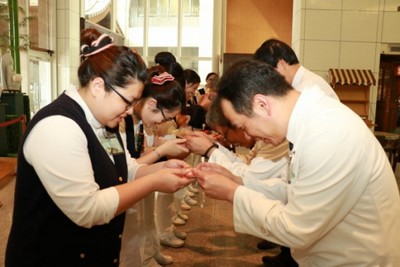 王人澍副院長頒發獎品並指出,醫護是一家人,有護理同仁的陪伴、協助、笑容還有對病人的服務,才能讓醫療工作順利進行。不到卅分鐘聚會,醫師承擔所有佈置場地、負責音控與招待工作,中醫部陳建仲主任最後帶領所有醫師雙手合十,向護理師致上誠摯的謝意,把「感恩、尊重、愛」的精神延續到中醫門診。