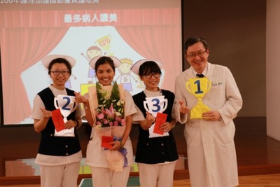 中醫部則於五月十二日表揚四位優秀護理同仁,表揚名單是由中醫部上至主任、下至住院醫師每人勾選二位,票數最多的前三名接受表揚。總策劃馮紀新醫師表示,因為有兩人同票,最後由吳玉蓉、楊雅淳、江玉珍與陳湘芬獲選。