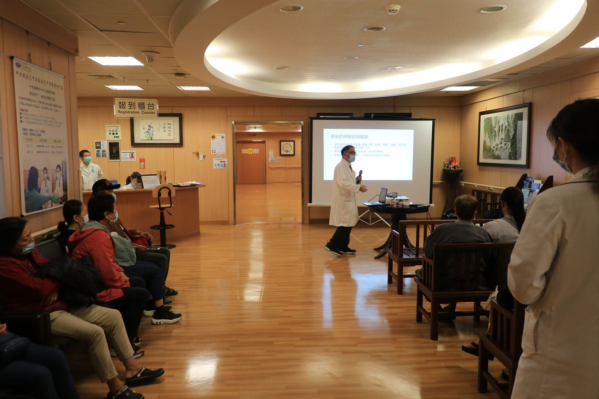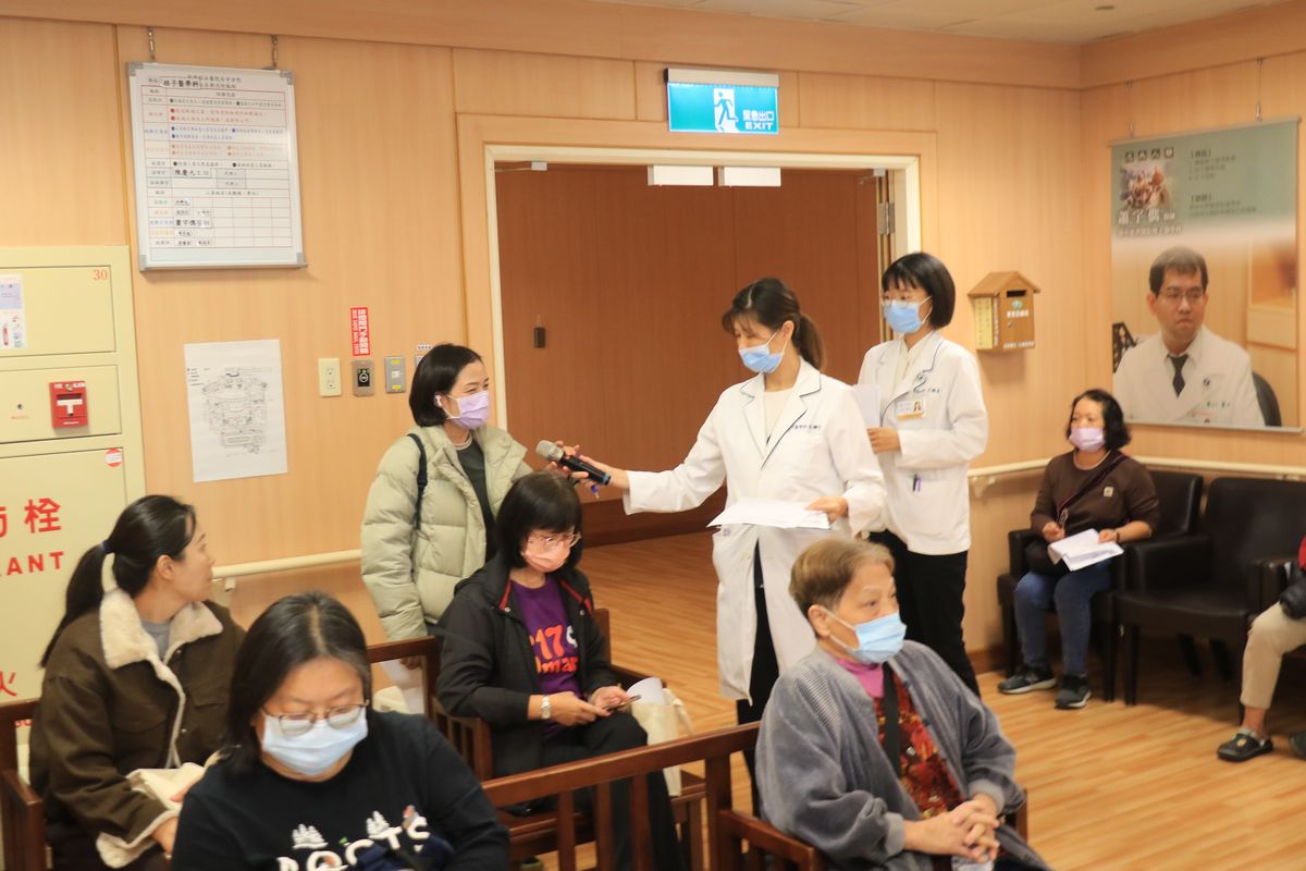 「等一下有衛教講座和有獎徵答,歡迎參加喔!」核子醫學科護理師林娜宜活絡候診區午後的靜謐,邀請民眾參與病友會活動。主講者蕭宇儁醫師開頭提問:「近年來甲狀腺癌的發生率呈增長趨勢,為什麼會上升?」他解答看似可怕的趨勢:「由於健檢普及與超音波檢查進步,提高了發現率,但只要配合治療真的不用過於擔心。」蕭醫師摸著脖子說明,甲狀腺癌除健檢發現,通常是吞口水摸到頸部異常或是發現聲音沙啞而求診,雖然甲狀腺癌好發於40到60歲女性,不過在55歲以下臨床表現進展緩慢,把握提早發現、治療的優勢,九成癌友預後良好。